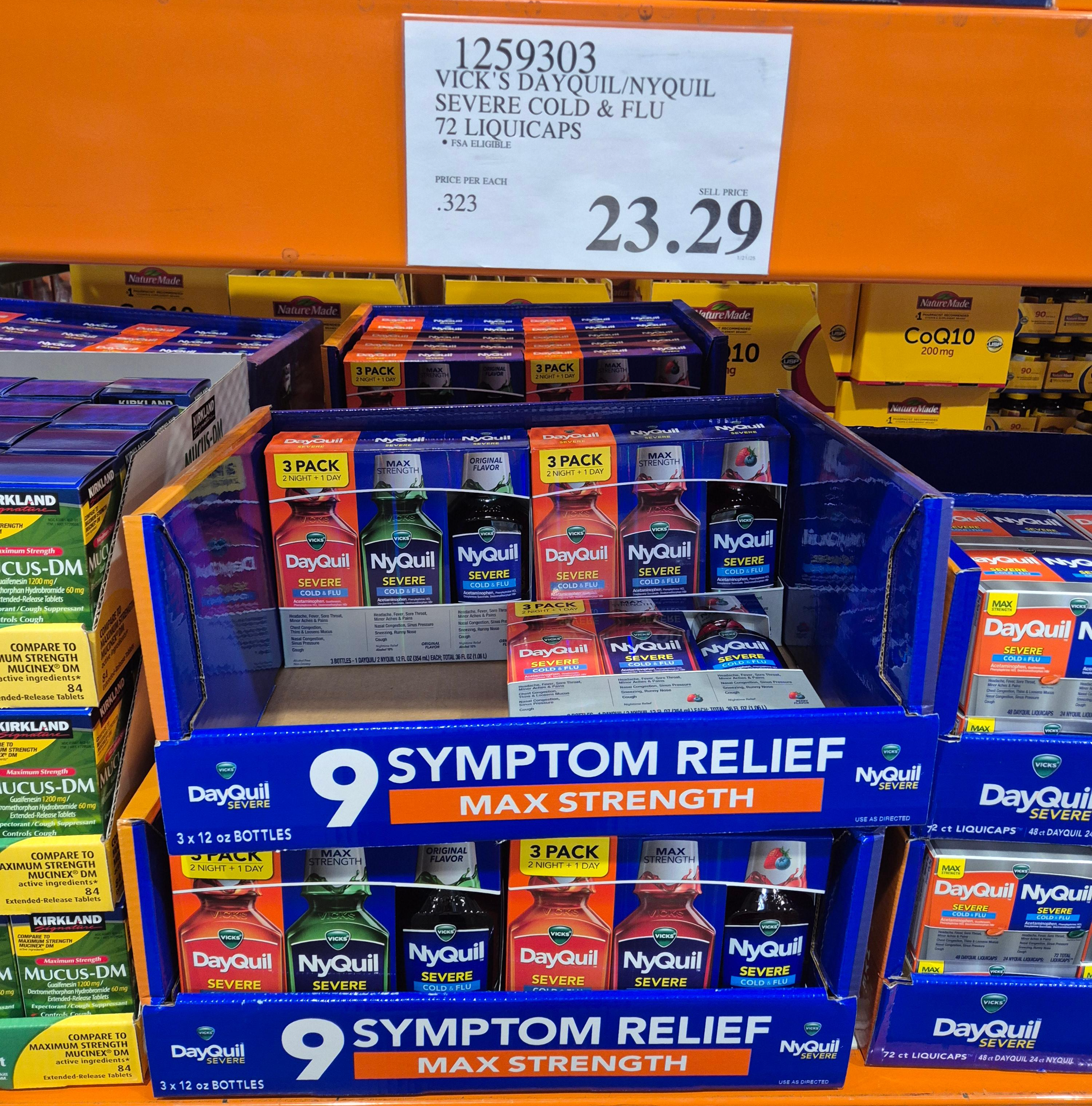 감기약인데 울 할머니는 기침날때마다 이거 찾으신다. 예전에 사드렸는데 효과가 좋아서 아껴드신다고;; 미국 올때마다 꼭 사드림. 그대신 이건 유통기한이 항상 짧다. 물약은 원래 그런가봄. 이거 CVS 에서 사면 한 통에 거의 만원 넘어가는데 코코에서 3통에 이 정도면 진짜 싼거다. Dayquil 은 낮에, Nyquil 은 잠오니까 저녁에 먹는 약인데, 감기기운 있으면 Nyquil 먹고 자면 좋음